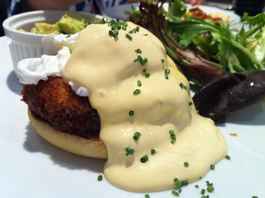 There’s also all the standard, more expected brunch bunch (which sometimes with a hangover is what you are looking for…although I do recommend the pork burrito, even with a devilishly sore head). Faves including good old bangers and mash, smoked salmon and scrambled egg, and crab cake benedict – a new creation (below).