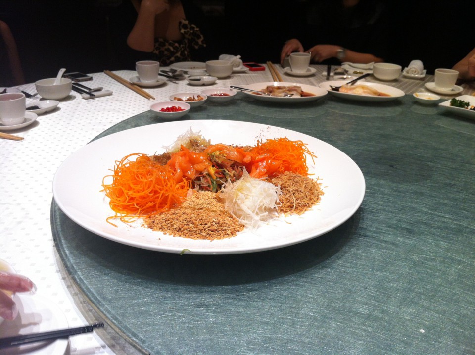 I recently read that there was a guy here in Singapore who once ate lo hei fifty times over one Chinese New Year (there are, what, 15 days in the official CNY period? Plus another seven if you count the week leading up to it all…so that’s just 22 days). I have managed eight this year which I thought (until I read otherwise) was quite good.