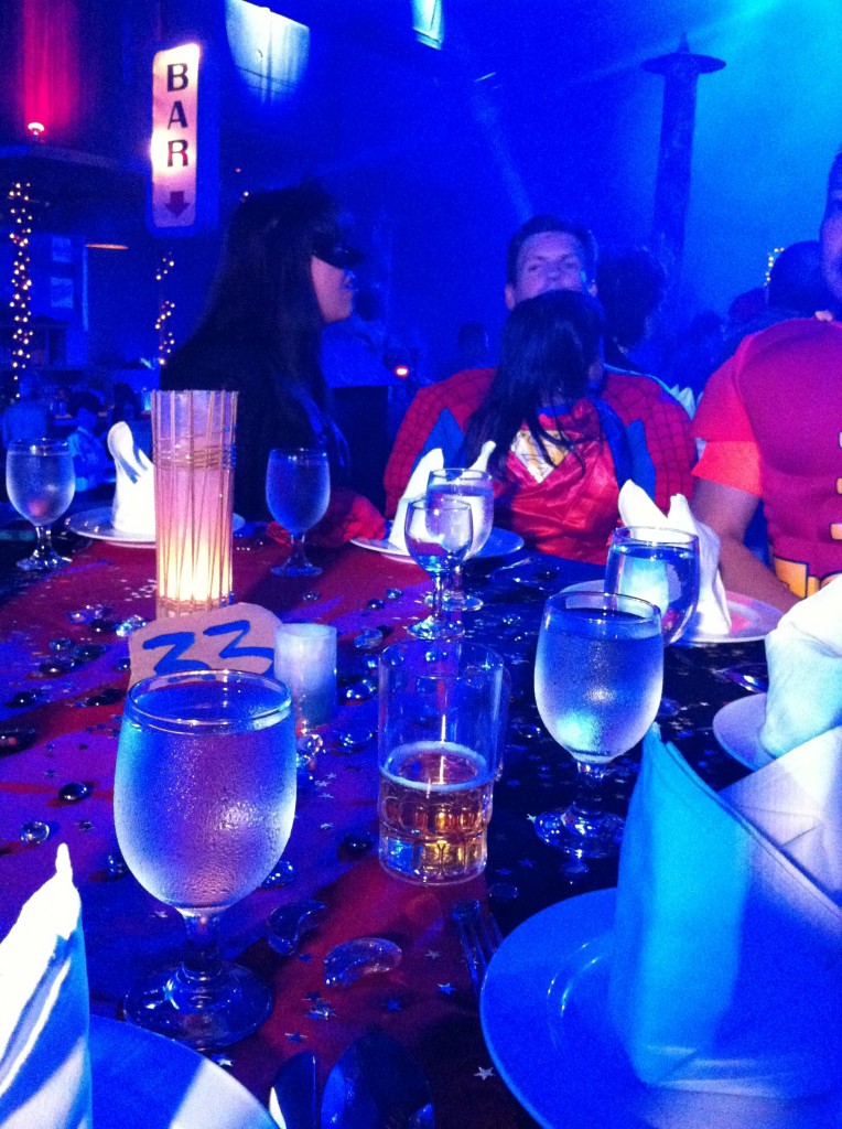MW came as a very convincing Tony Stark (I couldn’t resist telling him that in terms of job title, i.e. millionaire playboy, I wasn’t sure that he hadn’t just come as himself). He had quite a serious costume change later on for the floorshow where he appeared in a full on Iron Man suit and even managed a few flying stunts before being surrounded by clutch of pole dancers (what are pole dancers called when en masse?).