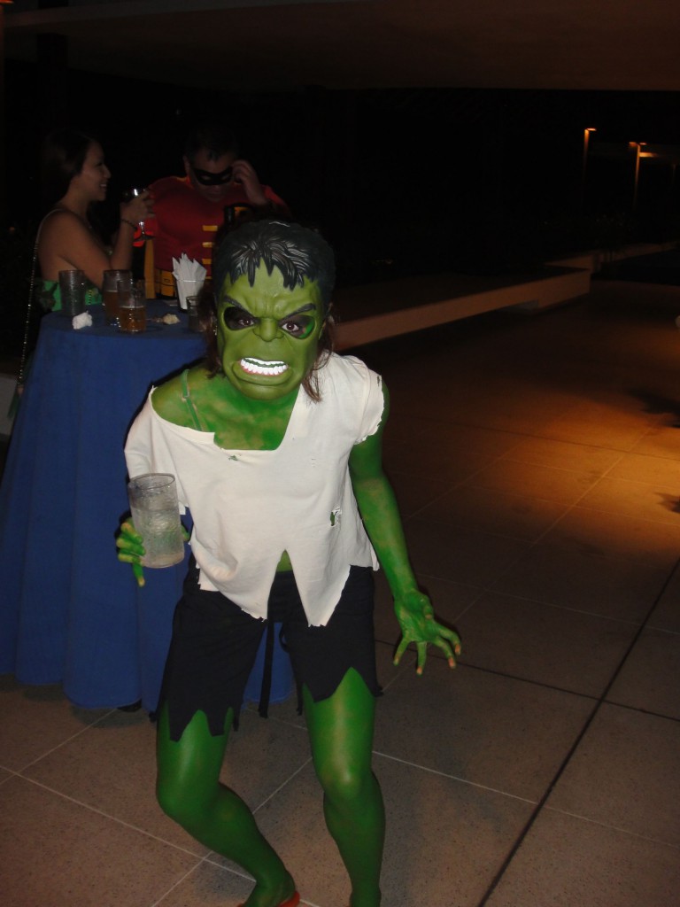Last year it was Clash of the Titans with a Medusa temple stage set built on rocks within the hotel’s extensive grounds. But no mucking around on the costume front, this time I researched my options properly. I could hire something or, for the same price as a trip to Costume Costume, I could actually buy something from the States or the UK. So a rubberized, synthetic snakeskin costume it was…I went as Medusa; the fear of The Pit long since forgotten and instead I watched with the bloodthirsty anticipation of a Roman with a good seat at the Coliseum, as people got hauled up on stage (‘Caesar Mike’ below right).