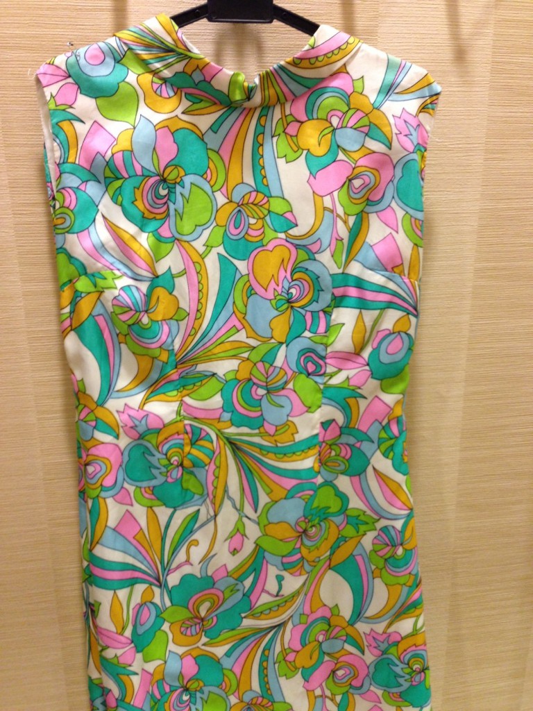 The other thing was a 1960’s dress in a fabulous print – very Pucci –  that I really do love. The only thing is it doesn’t fit me remotely well. It felt like it fitted better when I was standing in the corridor at the fair, squeezing it over my head. Since getting back to Sing, I’ve had to have it taken in and chopped about, probably costing more than I paid for it *sighs*